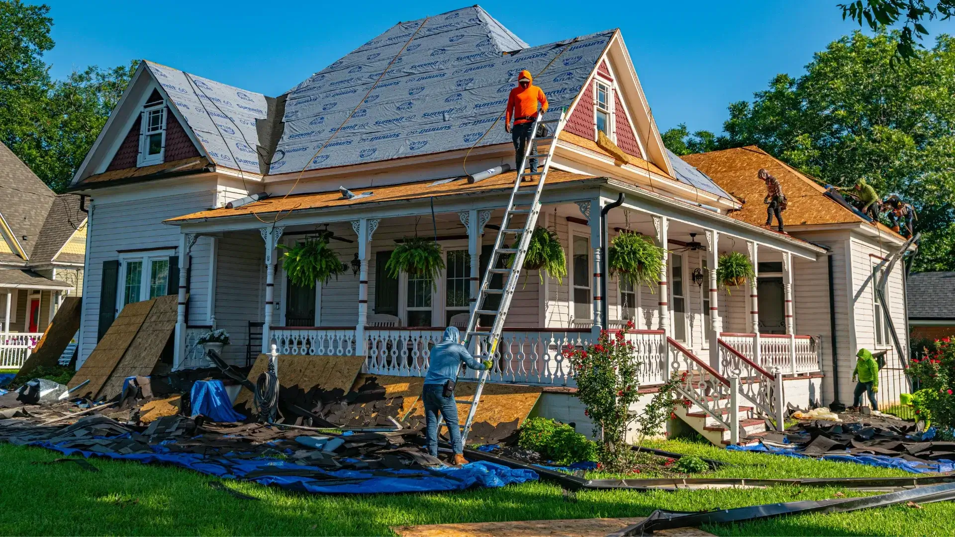 Our emergency response includes temporary tarping and board-up to protect your property immediately, followed by a full damage assessment and insurance-ready documentation. We work directly with your insurance adjuster to streamline the claims process and get permanent repairs scheduled as quickly as possible.